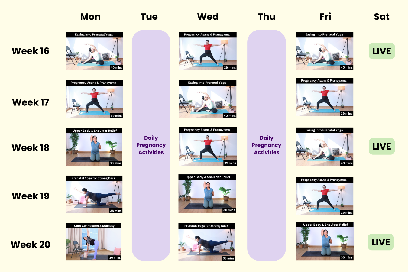 This program grows with you—helping you stay strong, flexible, and deeply connected to your changing body and baby.